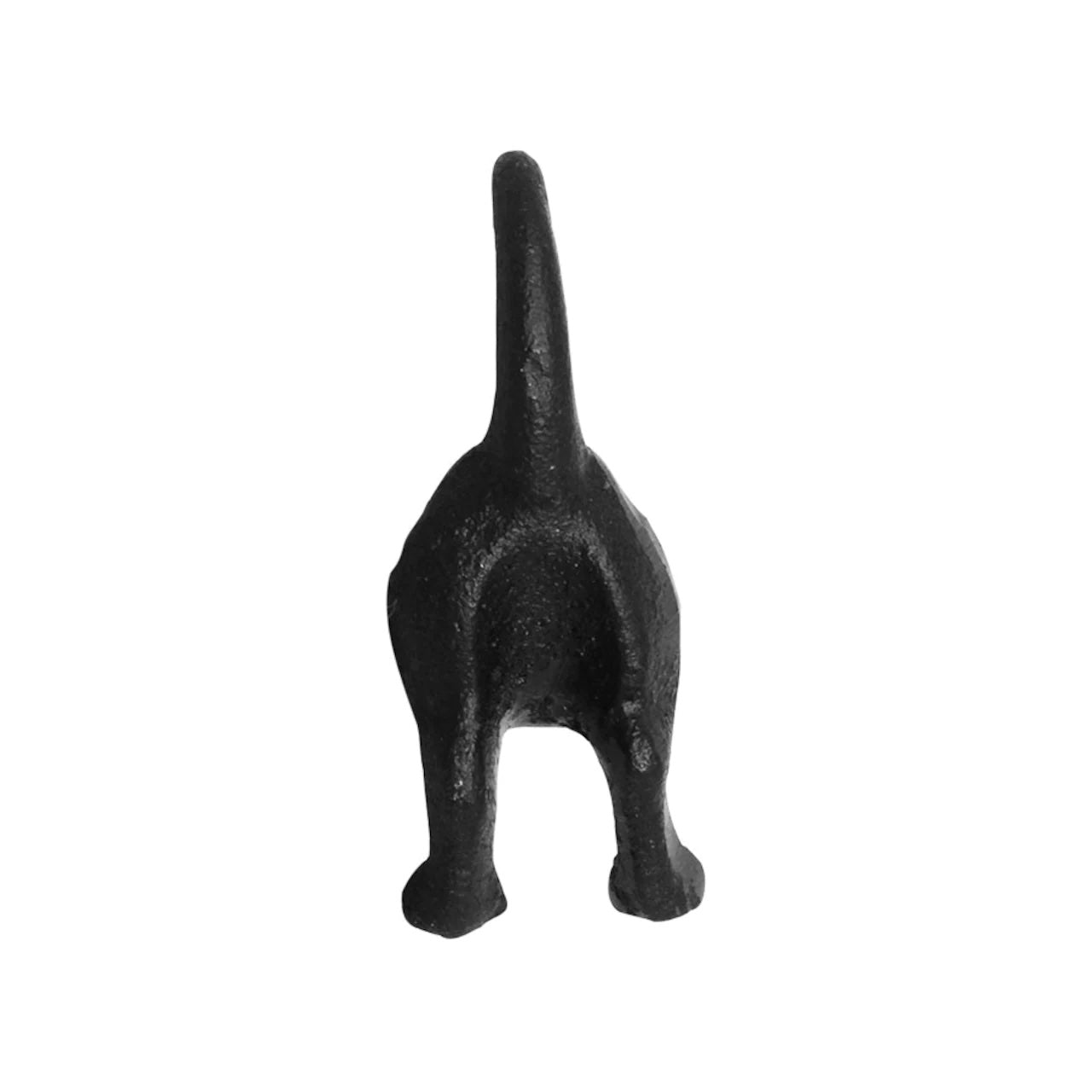 Krok i gjutjärn i form av en hunds bakdel där svansen är kroken.
